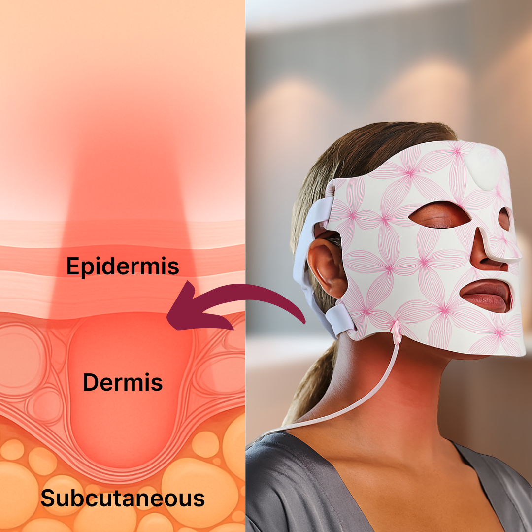Red and near-infrared light wavelengths penetrate deep to stimulate collagen and restore skin tone naturally.